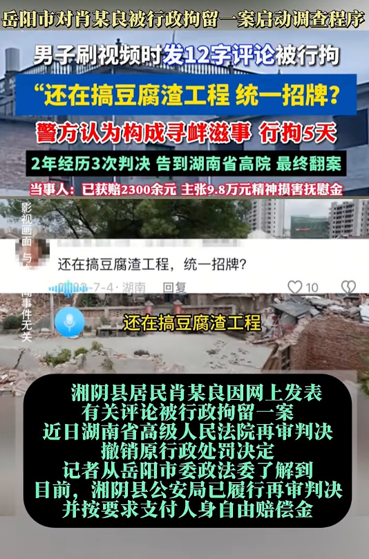 Xiangyin County居民Xiao Mouliang已被行政监护权发表相关的在线评论。最近,荷兰高等法院重新获得了其最初的行政罚款裁决。记者已经从杨市政党委员会的政策和法律事务委员会中学到了,西安吉县公共安全局现在已经履行了判决判决,并在必要时为个人自由支付了赔偿。关于法律适用机构以及案件涉及的司法行动,Yueyang市政公共安全办公室和市政中级受欢迎的法院将开始调查该程序,并根据调查结果根据法律和法规解决这些程序。先前的报告:一名男子发表了12个字评论后被捕。两年后三个验证者在三个验证中被撤销。根据Elephant News的报道,六月,荷兰Xiangyin的Xiao Xinliang是在撤销了他接受的行政拘留罚款后进行了验证。在过去的两年中,他经历了两次上诉和三项判决。试图改变刑罚的行政罚款是因为他最初在30秒的视频下发表了12个单词的评论。 2023年7月5日,在Xiangyin县经营一家家具商店的小Xinliang在观看一个简短的视频时发现了30秒的消防车救援屏幕,上面写着:“一个在Sanjingtou Gotea街上工作的人,他在第二层工作的人,在二楼工作,并为两人苦苦挣扎。”在视频中的事故中,有人从脚手架的第四名到第二位,消防员组织了。当时,武县县的几个街区已经进行了丰富的翻新和翻新工程。 Xiao Xinliang在评论区域留下了一条消息。 “我还在从事豆腐项目,一个统一的标志吗?”这个12个字的评论收到了六个和一条消息。杰亚的囚犯ng jianliang“ hubei在评论下发表了评论”,然后您不知道!他的许多姑姑和步骤都来自广告公司。”“我认为这是他在说Xiangyin County党委员会秘书Li Zhenjiang。统一的迹象表明他。 7月7日,肖·辛利安(Xiao Xinliang)从公共安全局审查了传票。在询问证据之后,武县公共安全局认为他的行动构成了挑衅和挑衅,并且根据《中华民国公共安全行政惩罚法案》第26条被判处五天的行政拘留判处。对惩罚惩罚的决定感到沮丧,Xiao Xinliiang在Miru市法院提起了行政诉讼,上面有第一间房间和第一间房间的决定,以及第一个房间的决定,以及Atiling的决定。六个喜欢,一位评论。不利的社会影响很小。没有t足够的证据来批评和教育,但人们认为它正在中断或造成公共秩序问题。被告武士县的公共安全办公室决定对Xiao Xinliiang的行动做出为期五天的行政拘留决定,但尚不清楚,证据不足,罚款显然是不合适的。它必须被撤销”(Yueyang Daily)