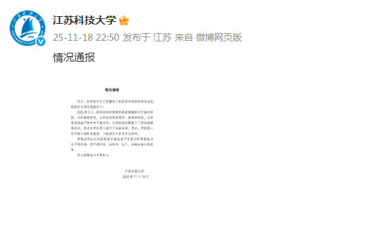 据江苏科技大学官方微博消息,该校现就网络平台流传的郭先生学历造假的消息进行通报。