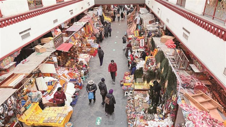 八廓商城是拉萨市民购买年货的知名去处,已连续多年举办年货节。 2026年年货节,我们将借机开设免费摊位,以种类繁多的年货为载体,拉近消费者和卖家的距离。购物中心精心划分了 240 个摊位,设有专门区域适用于囊片、羊头、蝴蝶花、青稞、糖果和坚果等产品。物品从一楼到三楼整齐排列,形成了一条令人眼花缭乱的年货“走廊”,让市民能够快速找到自己喜欢的物品。